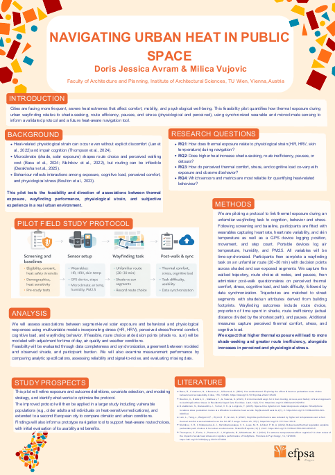 At the 40th Congress of EFPSA 2026, Doris Avram from the Vienna Doctoral School on Digital Humanism presented her pilot study that bridges environmental science, human behavior, and digital innovation. Her research, “Navigating Urban Heat in Public Space,” examines how rising temperatures are reshaping the way people move through cities and how technology can support better adaptation.