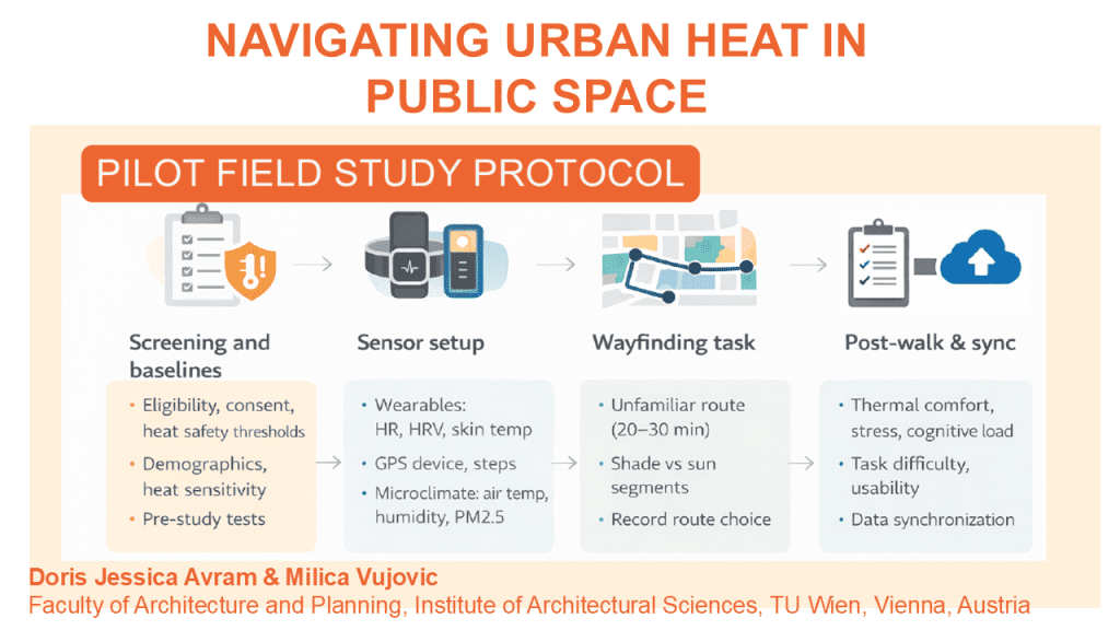 What makes this approach particularly powerful is the synchronization of physiological, environmental, and behavioral data. This enables analysis of how thermal exposure affects route choices, pauses, efficiency, and perceived stress. The study expects that higher heat exposure leads to more shade-seeking behavior, less efficient navigation, and increased cognitive load.