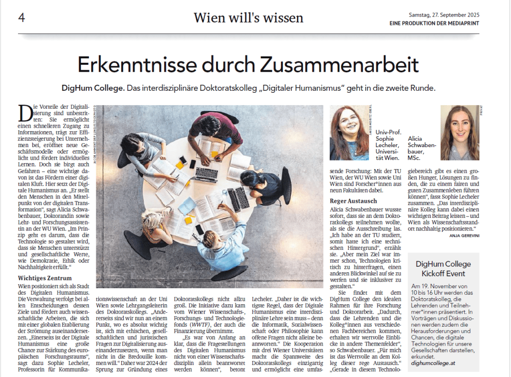 The DigHum Doctoral College was recently featured in Kurier as part of its special…